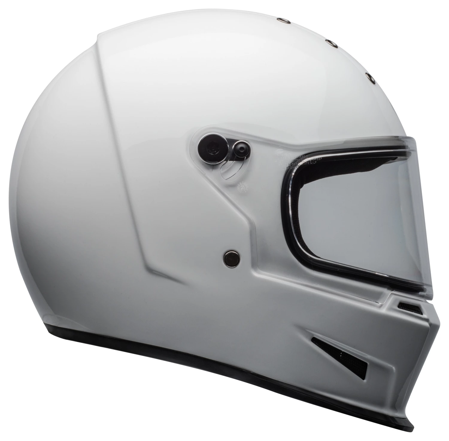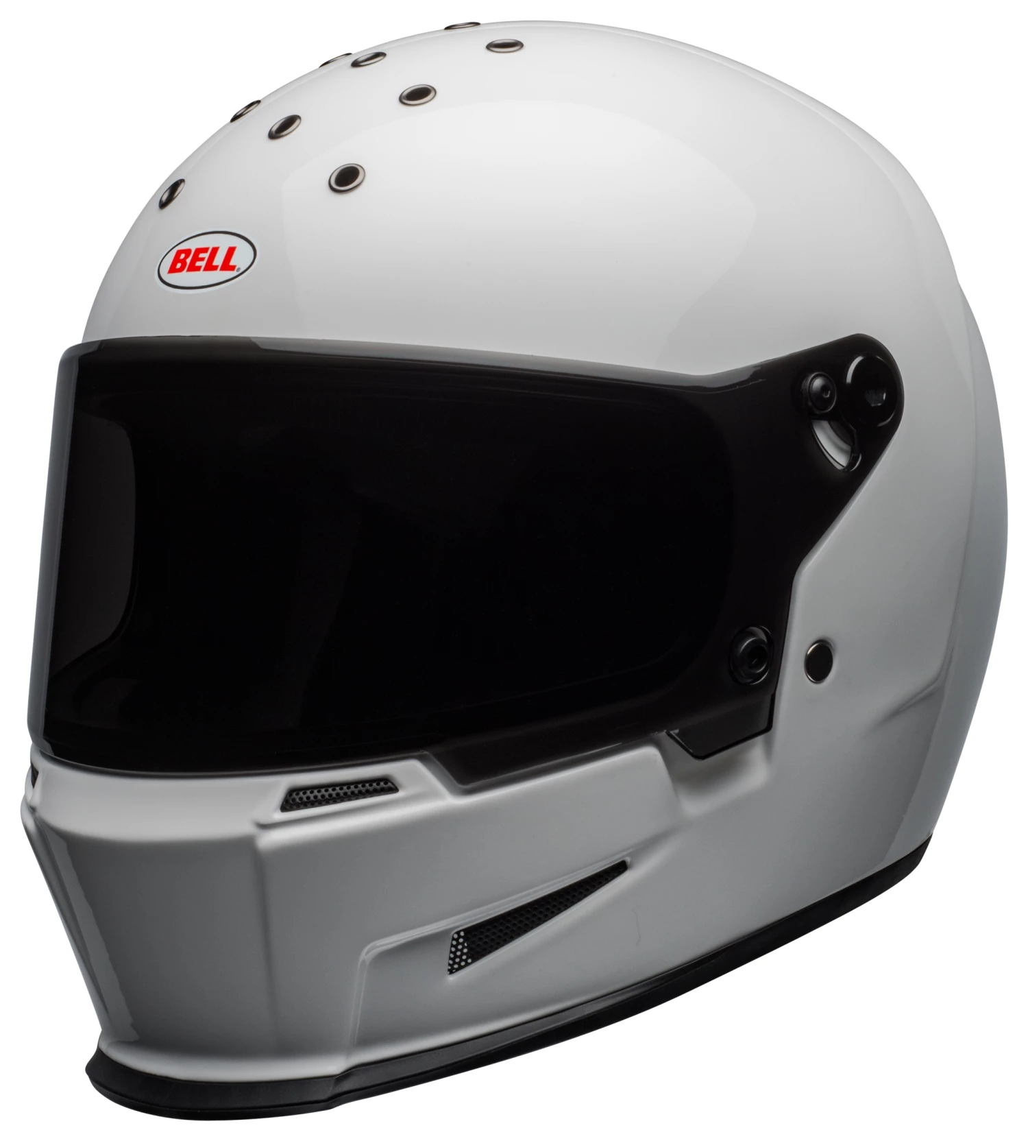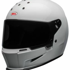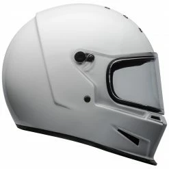 The Bell Eliminator is a stripped down, yet bold, full-face helmet with street cred. Constructed with a fiberglass composite shell, the Eliminator boasts the ProVision dual pane, anti-fog face shield with Class 1 optics. The anti-bacterial liner and contoured cheek pads are comfortable. Take off the face shield and put on the optional peak for use with your own pair of goggles.